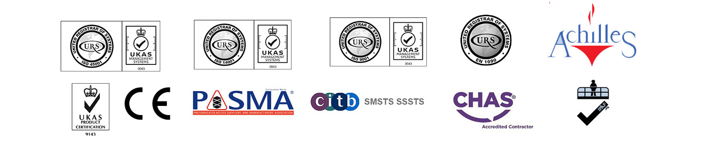 Our site fitters will have some of the following tickets: IPAF, PASMA, SLINGER SIGNALLER ,SSSTS, SMSTS and all hold CSCS cards. We also are PTS (personal track safety) trained and work regularly on the railway and London Underground. All our metal is issued with CE Marking and a mill test certificate that complies with EU legalisation.