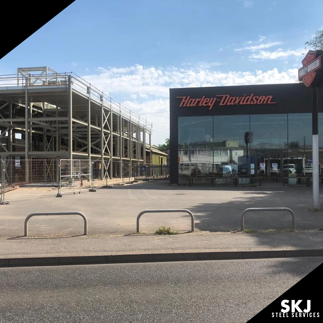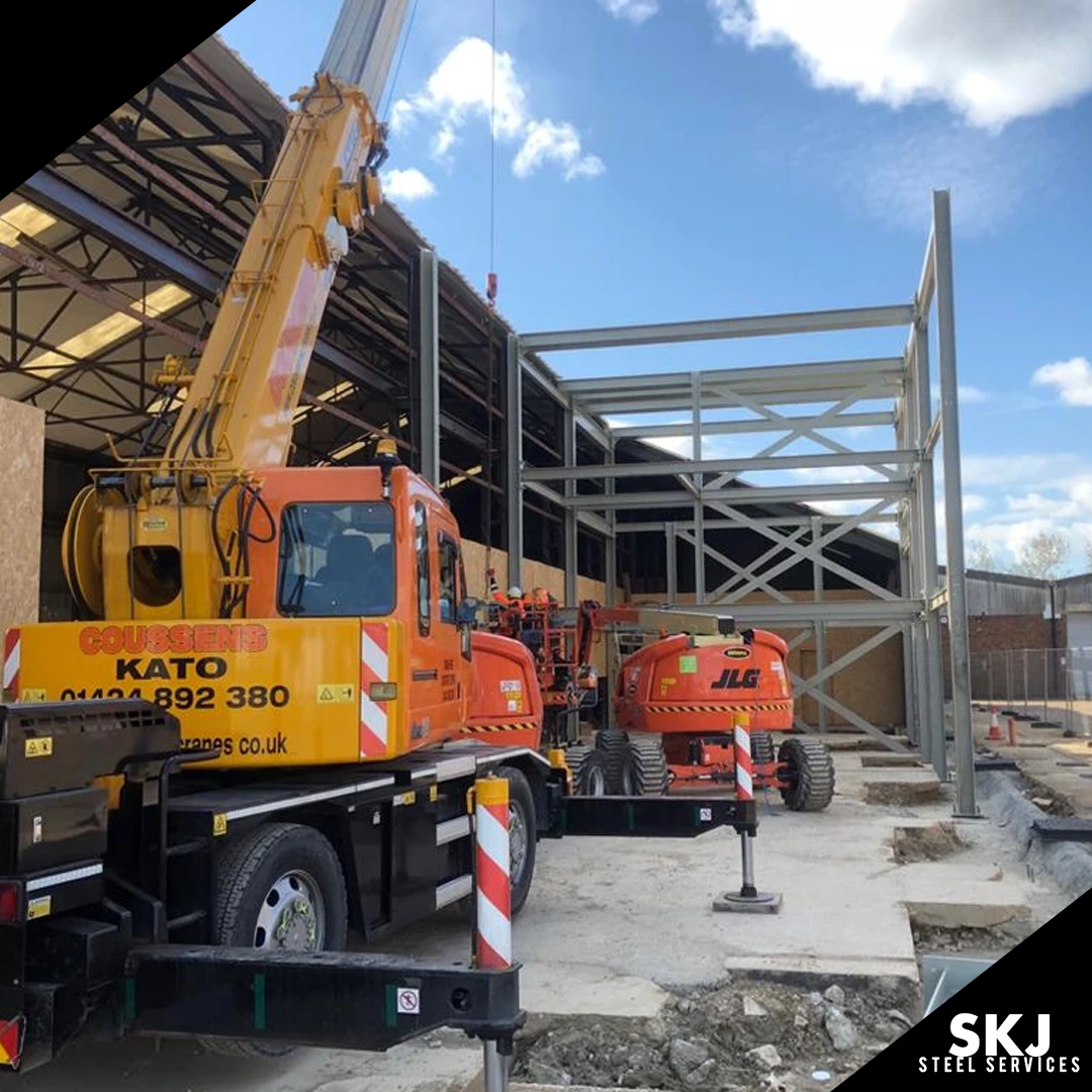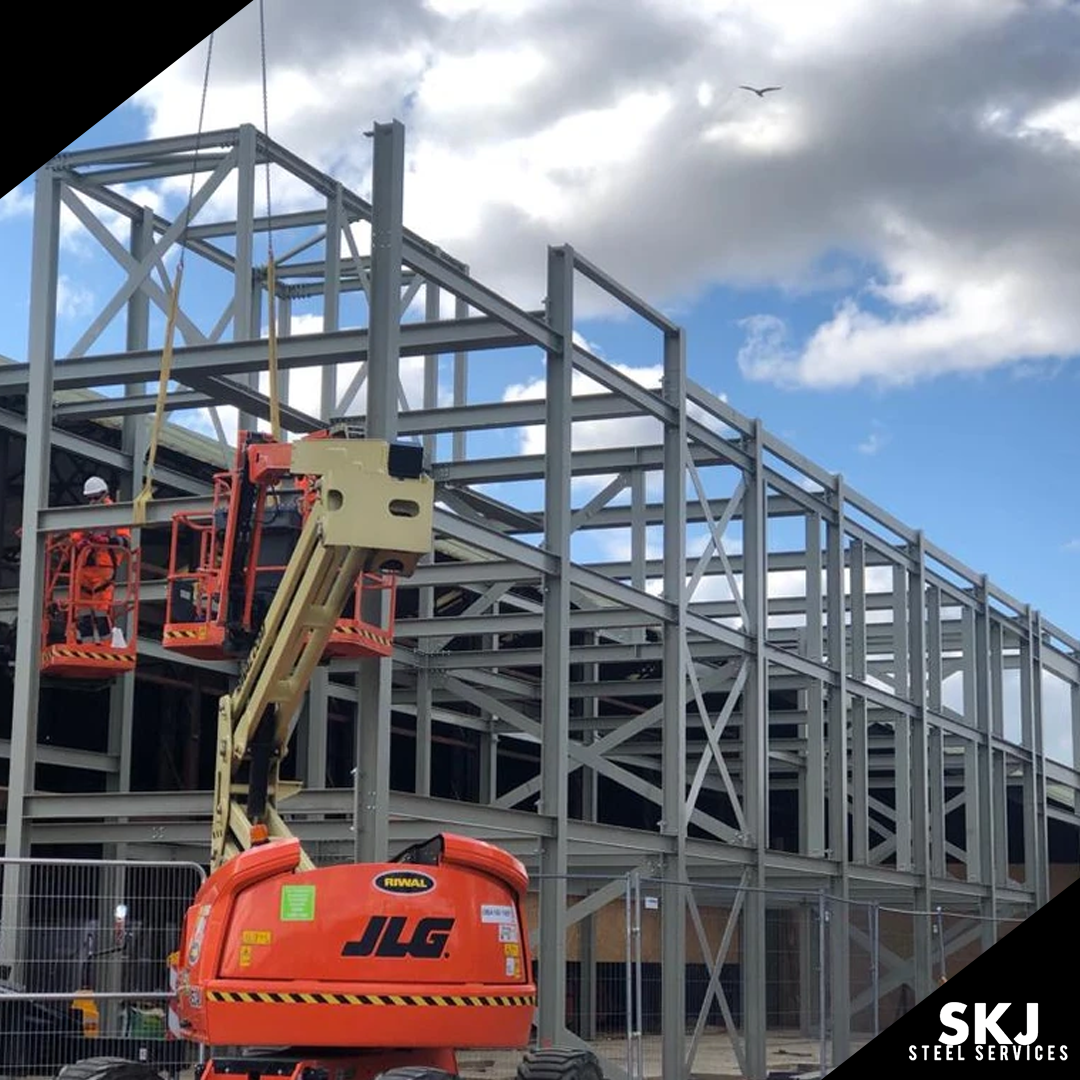 Aylsford is a project where SKJ Steel Services designed, fabricated, painted and installed all the works. Given a short time frame 85 tons was added to the existing building to give a lot more size, space, strength and access within the building. This project was fabricated in just 4 weeks and installed in another 4 weeks, making this project a very quick turn around meeting all our client’s needs. On install our SKJ site team, set out all column studding drilled and set them prior to installation, this is very important or could throw out all the steel. The SKJ site team had a tricky install, this is where their IPAF skills came in and managed to manoeuvre around the existing building to get all beams, columns and braces into place. The whole project went smoothly and very happy with the results.