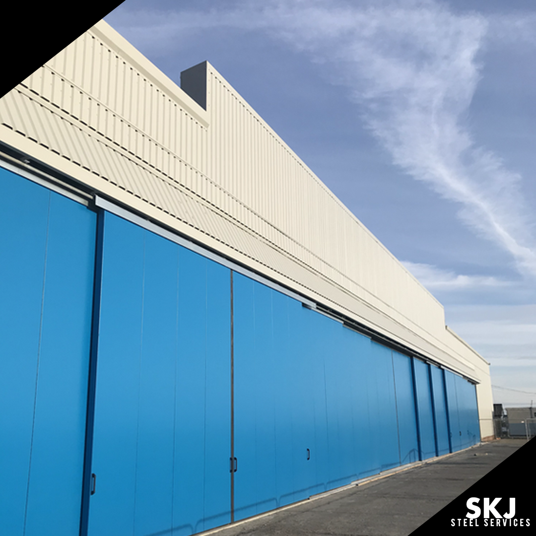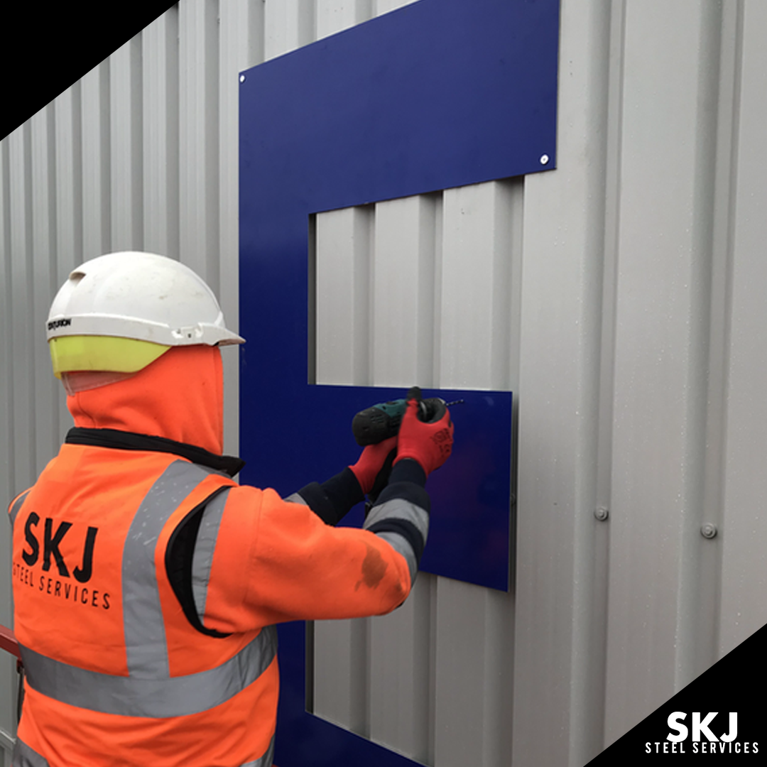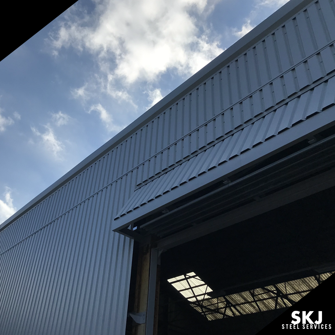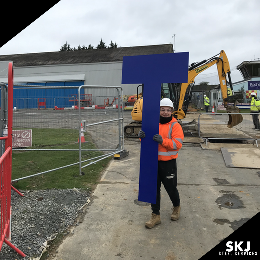 Rochester Airport was a project where SKJ Steel Services had to design, fabricate, repair and install, taking a very old building and giving it a new life. Starting the project with complete steel repairs on the columns, adding new plates to strengthen the original steel, changing corroded rivets and new structural steel to give the building more strength. The original truss was then painted with more than 280 micros to last thought out the years to come. Once all the repairs were completed, new steel could start to be fitted, we supplied all designs and working with Kier to create an amazing new building. We added 3 new columns either side of the hanger to take Perlins when it came to hanging cladded sheets, we then went on to install the new canopy which sits in the middle of the building for the new door to hang to. The new canopy gave the building a great new look with added protection. Once the new canopy was installed, Perlins could be set ready to take the new cladding. The perils were set, and it was important to be level and in line, so no cladding sheets would not bulge. The SKJ team then moved onto the cladding sheets and installed working from left to right of the building, using MEWPS, lining and levelling so that the sheets look perfect, all cladding was then finished with fashings to give the building this finishing touches and really give this building a new life. Hanger 3 at Rochester Airport was then finished with the iconic lettering profiled and installed by the SKJ operatives. Please see the photos